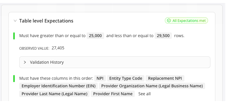 Plus, Expectations are reusable and create their own documentation, making it easy to deploy them across large numbers of datasets and then keep everyone on the same page about what they’re doing.
